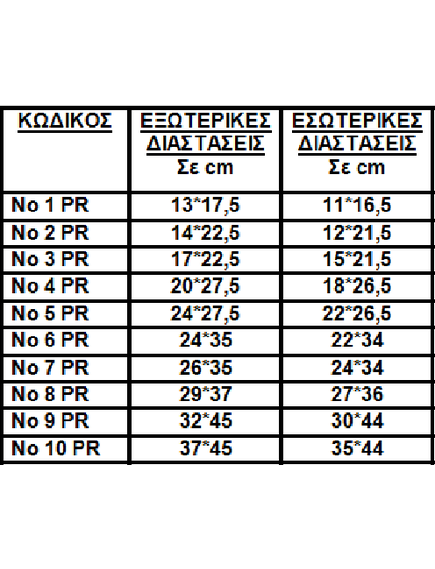 Σημειώστε ότι οι διαστάσεις που βλέπετε στο μενού είναι οι εξωτερικές. ενώ η ωφέλιμη διάσταση. εσωτερικά. είναι 1-2cm μικρότερη λόγω του στρώματος πλαστικού με αέρα που φέρουν στο εσωτερικό τους.