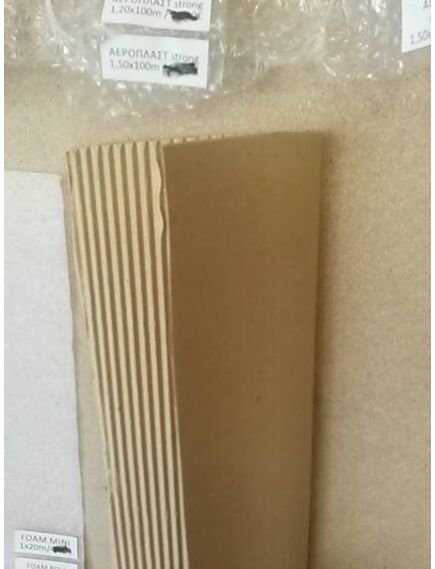 Χαρτόνι κυματιστό συσκευασίας σε ρολό διαστάσεων 1m X 34m και βάρους 10-10.5 κιλών και 1.2m X 65m και βάρους 23 κιλών. Ιδανικό για πολλές χρήσεις. όπως ελαιοχρωματισμούς. μετακομίσεις κλπ.