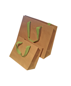 ΤΣΑΝΤΕΣ ΧΑΡΤΙΝΕΣ ΚΡΑΦΤ ΚΟΡΔΕΛΑ ΦΑΚΑΡΟΛΑ Τσάντες χάρτινες με κορδέλα φακαρόλα σε δύο χρώματα κατάλληλες για τα δώρα & τα εμπορεύματα σας. Στον πάτο διαθέτει χαρτόνι για σταθερότητα. Η κορδέλα διατίθεται σε λαχανί, μαύρη και πορτοκαλί. Οι διαστάσεις εμφανίζονται με τη μορφή: Μήκος-Βάθος-Ύψος Το χαρτί στο επάνω μέρος γυρίζει προς τα μέσα σκεπάζοντας τα χερούλια. Επιλέξτε την διάσταση που επιθυμείτε. Το καθε πακέτο περιλαμβάνει 25 τεμάχια. -Προϊόν κατόπιν παραγγελίας -Οι τιμές δεν περιλαμβάνουν ΦΠΑ