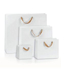 ΤΣΑΝΤΕΣ ΛΕΥΚΕΣ ΜΕ ΚΟΡΔΟΝΙ Τσάντες χάρτινες λευκές ματ με κορδόνι γιά τα δώρα η τα εμπορεύματα σας. Στον πάτο έχει κορδόνι για μεγαλύτερη σταθερότητα. Το χαρτί στο επάνω μέρος γυρίζει πρός τα μέσα σκεπάζοντας το χερούλι. Οι διαστάσεις έχουν τη μορφή πλάτος x βάθος x ύψος. Το πακέτο περιλαμβάνει 25 τεμάχια. Η αναγραφόμενη τιμή αφορά τιμή πακέτου. Δυνατότητα εκτύπωσης! -Προϊόν κατόπιν παραγγελίας Οι τιμες δεν περιλαμβάνουν ΦΠΑ.