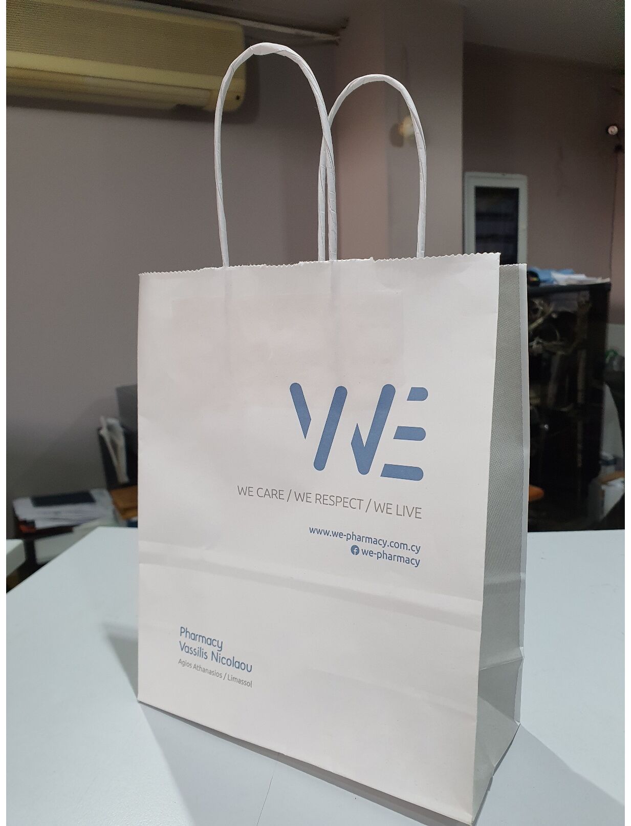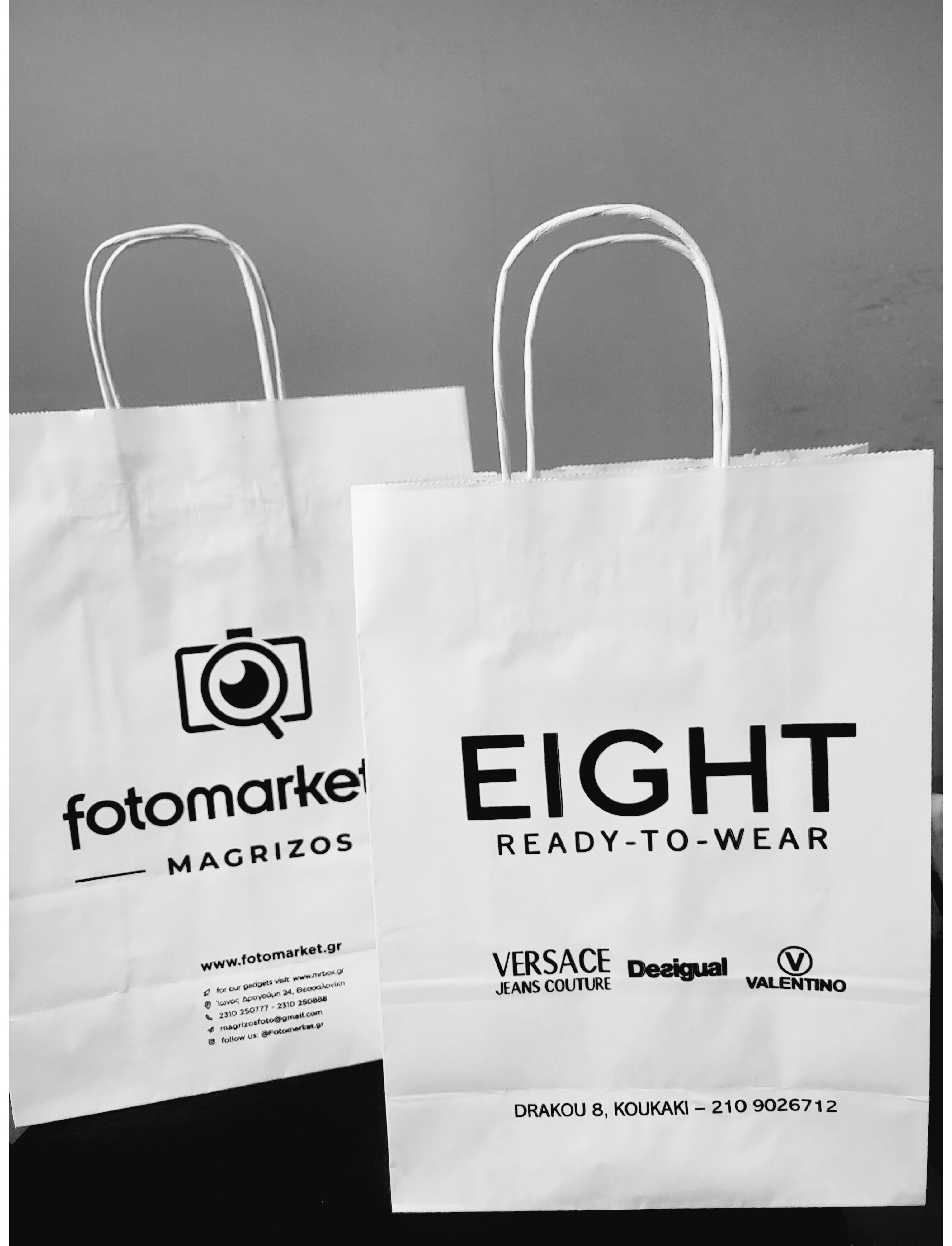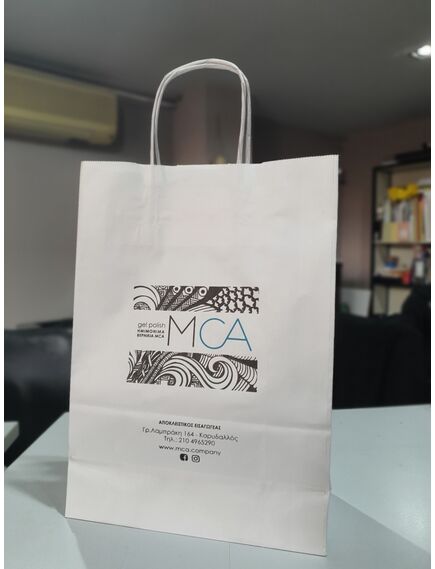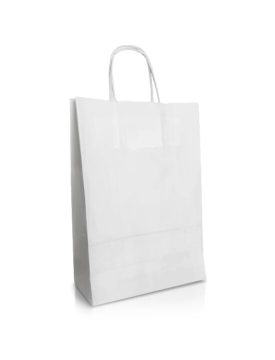 Σακούλες σε λευκό χρώμα με στριφτό χεράκι κατάλληλες για κάθε είδους κατάστημα/επιχείρηση τυπωμένες με το λογότυπό σας ώστε να δώσετε ταυτότητα στο εμπόρευμά σας.