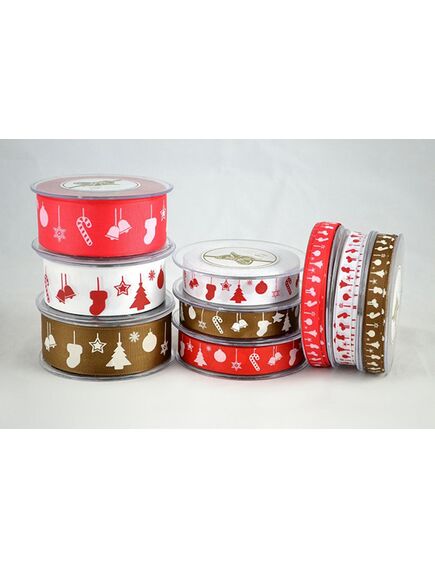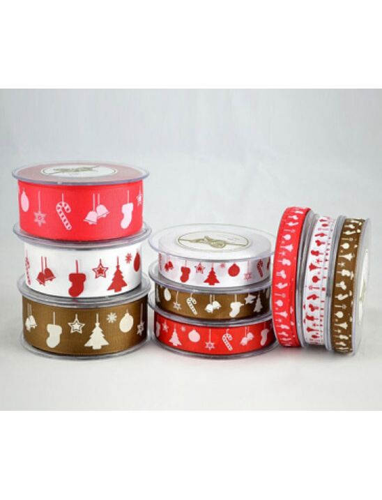 Κορδέλες χριστουγεννιάτικες βαμβακερές γκρο με διάφορα στολίδια. ιδανικές για να στολίσετε τα χριστουγεννιάτικά σας δώρα.