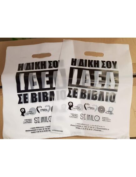 Σακούλες πλαστικές τυπωμένες χούφτα. Παρασκευάζονται από πλαστικό Α' ποιότητας και τυπώνονται και στις δύο πλευρές με το λογότυπό σας.